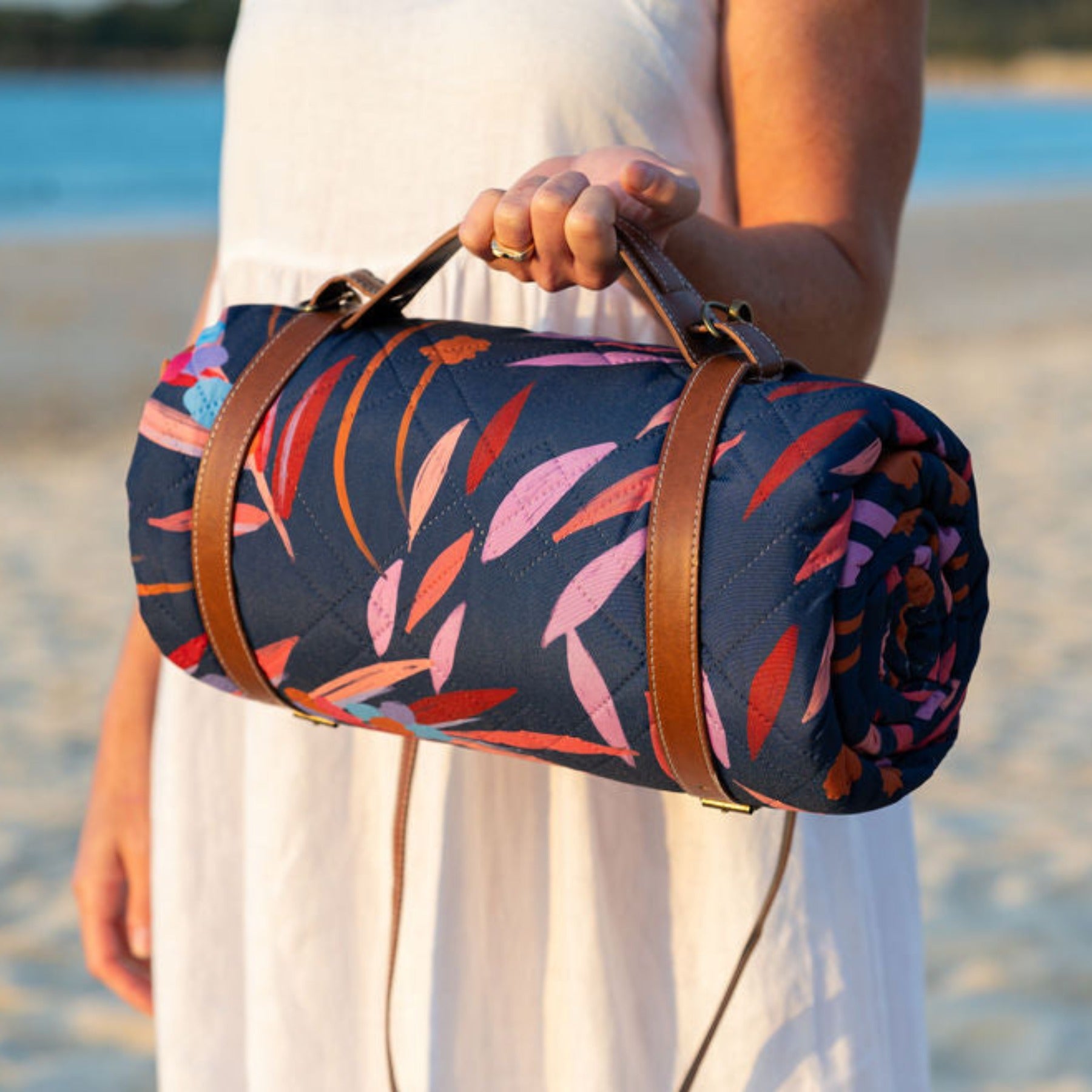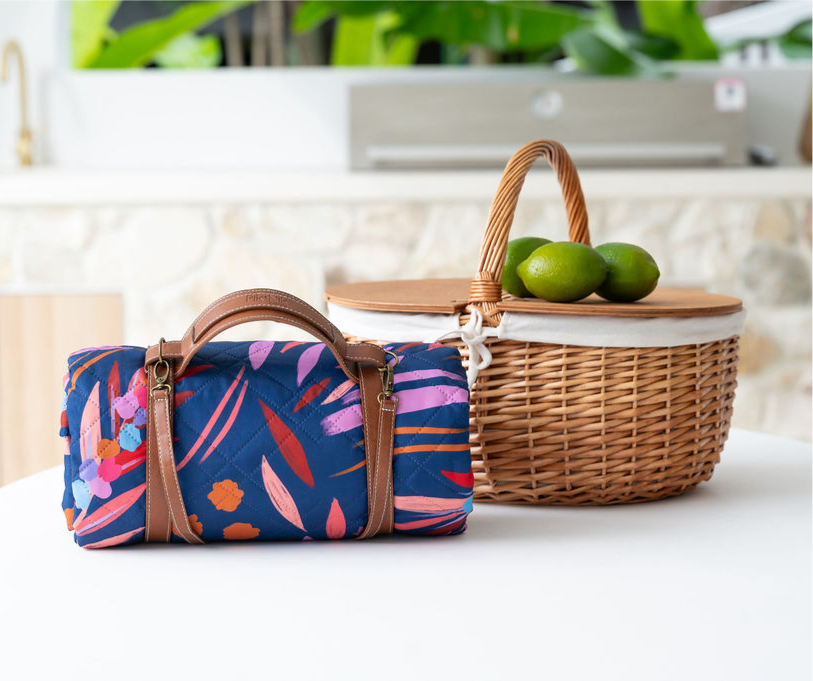 A gorgeous blend of Australiana. Beautiful dark blue picnic rug blended with the perfect amount of vibrant. We absolutely love this Wattle print created by the very talented Christie Williams and so does everyone else.